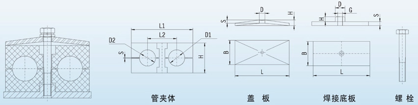 材质:管夹体:塑料金属配件:碳钢、304不锈钢、316不锈钢